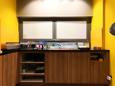 Prostor se nachází v přízemí budovy a disponuje velkými výlohami s přímým vstupem z ulice.